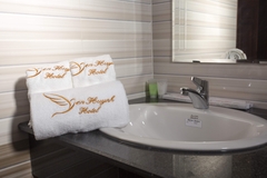 Về tiện nghi ở KS thì chúng tôi có đầy đủ tiện nghi với những trang thiết bị hiện đại và mới nhất. Trong mỗi phòng đều được trang bị Tivi LED 32 in , máy lạnh, tủ treo quần áo, tủ lạnh ,gương, bàn tiếp khách , khăn, đồ dùng vệ sinh, nước uống chào đón miễn phí , internet wifi tốc độ cao miễn phí v.v... Khu vực sãnh chờ và Lễ tân rộng rãi, an ninh 24/24 , phục vụ phòng mỗi ngày , dịch vụ cho thuê xe du lịch, xe máy, dịch vụ vé tàu và vé máy bay, dịch vụ taxi , đặc biệt chúng tôi còn có dịch phụ bán vé đến khu vui chơi Vinperl Land Phú Quốc, v.v...