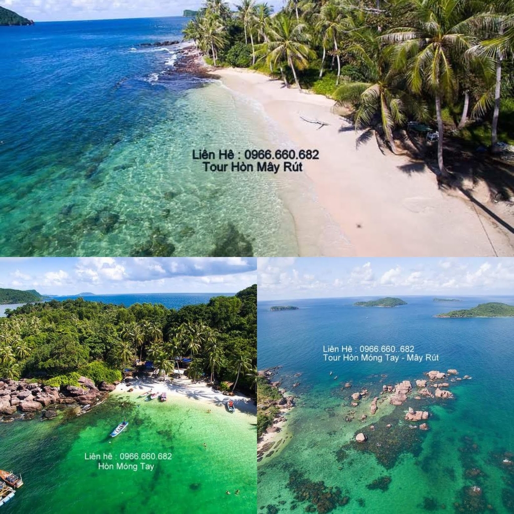 Tour đi các đảo phú quốc như các hòn móng tay,hòn mây rút,hòn ghầm ghì(dăm ngang),hòn thơm,hòn bườm và đi cáp treo vượt biển dài nhất thế giới.Với chương trình này quý khách sẽ được lên các bãi biển đẹp,hoang sơ,tha hồ chụp ảnh ,đồng thời được ngắm các loài cá trong những rạng san hô đầy màu sắc.