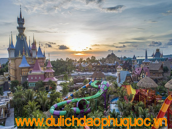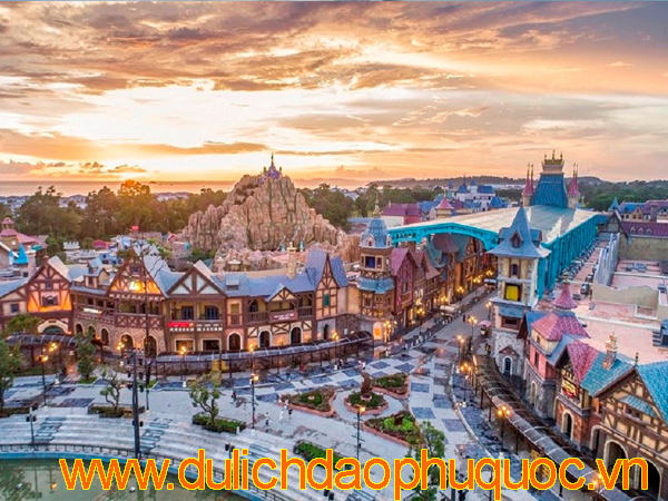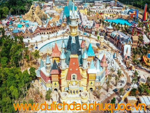 Khung cảnh cổ kính nơi đây sẽ là sân khấu trình diễn của show diễn trứ danh "The One" với sự kết hợp độc đáo giữa sân khấu nhạc nước, lâu đài huyến bí và các hiệu ứng độc đáo bậc nhất hiện nay từ khói, lửa, băng...Đặc biệt, Thế giới diệu kỳ là hành trình cổ tích mang đậm dấu ấn của VinWonders Phú Quốc. Những câu chuyện cổ lừng danh được tái hiện trong không gian tương tác sống động với các nhân vật được Việt hóa đặc sắc như công chúa Ba Tư, chàng Aladdin, thần đèn...Bên cạnh đó, Cung điện Hải Vương là một trong 5 thủy cung lớn nhất thế giới với kiến trúc hình rùa biển khổng lồ độc đáo. Đây là nơi trú ngụ của hàng chục nghìn cá thể: cá mập, sứa, chim cánh cụt... sinh động đến từ thế giới đại dương huyền bí.